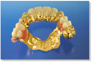 Galvanotechnik -24 karätiges GoldGalvanotechnik ist indiziert bei Einzelkronen mit geringen Platzverhältnissen im Frontzahnbereich, insbesondere aber für kombinierten Zahnersatz.Pluspunkte: - hohe biologische Verträglichkeit und Mundbeständigkeit (99% Gold)- absolut präzise Führung und Haftung bei Teleskop – oder Konuskronenprothesen- Friktionserneuerung bei teleskopierendem Zahnersatz- Vergoldung von Modellgusskomponenten (sichtbaren Klammerarm etc.)